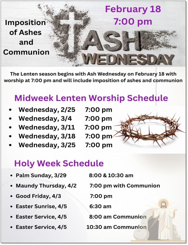 Ash Wednesday, Lent and Holy Week Services